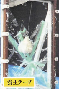 大家のしんちゃんでは、一般的なガラス飛散防止フィルムよりも強度が高く、飛来物によるガラスの貫通を防ぐフィルムを使用。住宅・学校・工場・公共施設・店舗・病院などで仕様されている信頼性の高いフィルムです。